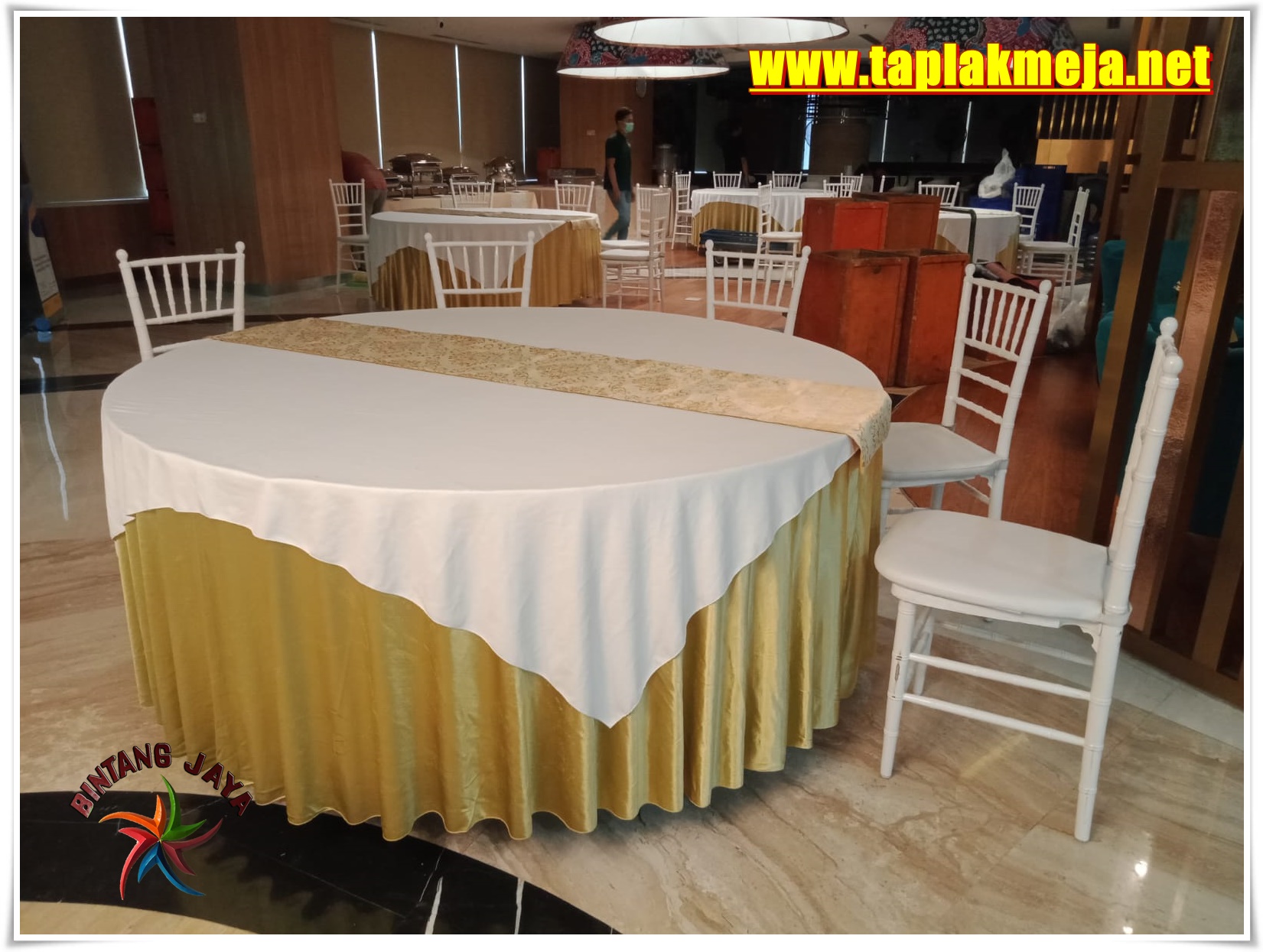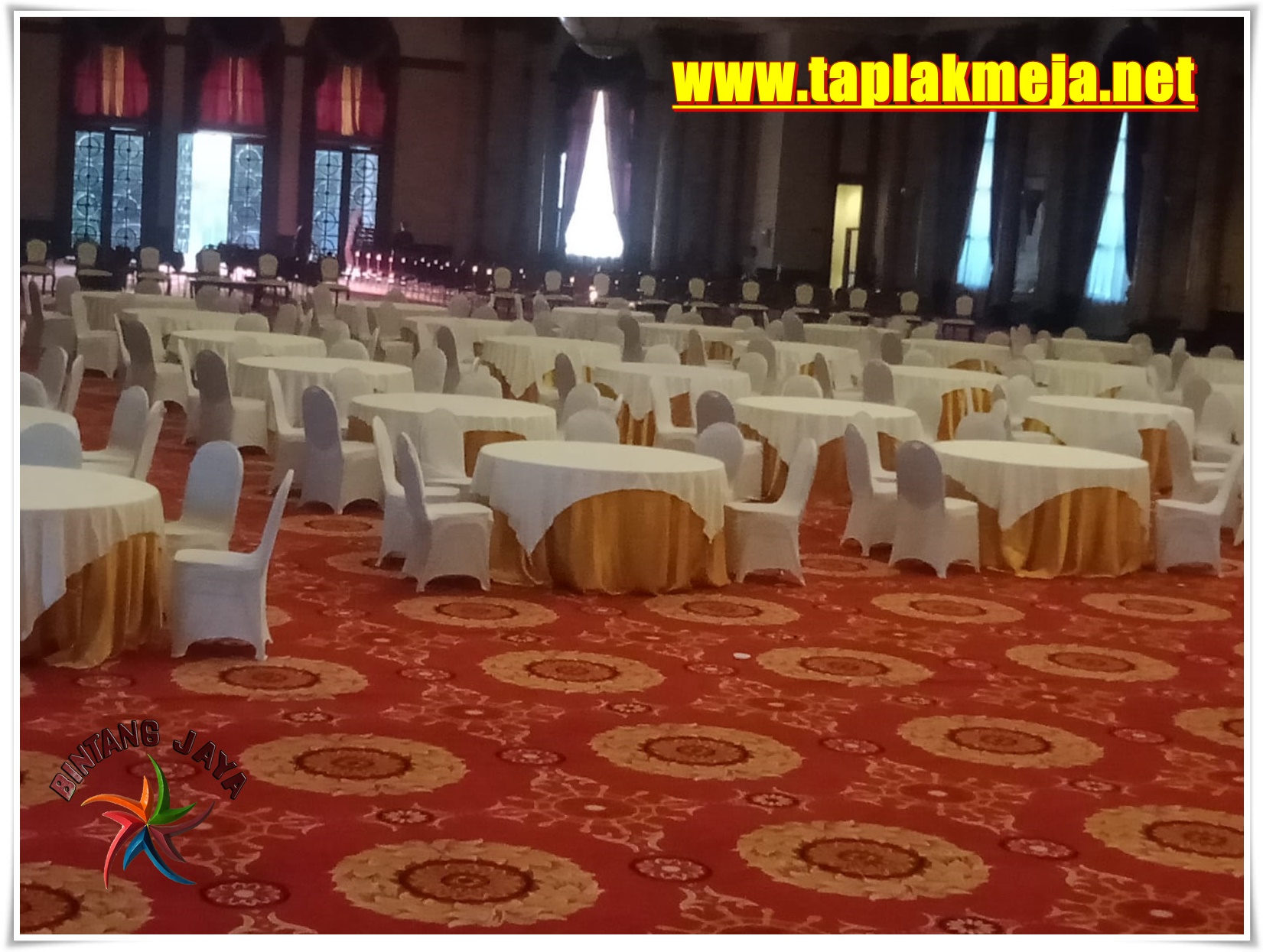 Dijual taplak meja kualitas premium standar hotel, siap kirim untuk melengkapi kebutuhan alat event anda dan menambah koleksi galeri pilihan taplak meja keren dari kami.