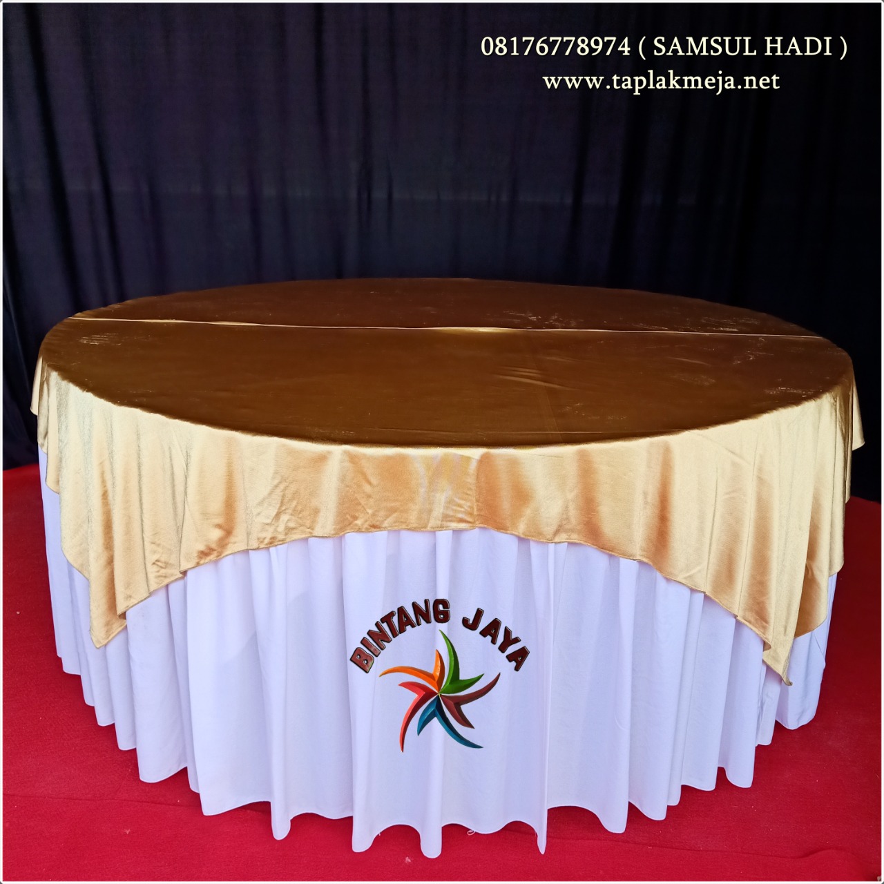 Taplak meja pesta bulat premium, cv bintang jaya event merupakan mitra butik taplak meja premium yang sudah terpercaya dan sudah terkenal, hasil taplak meja kami standar hotel dengan kualitas yang bisa dibuktikan sendiri.
