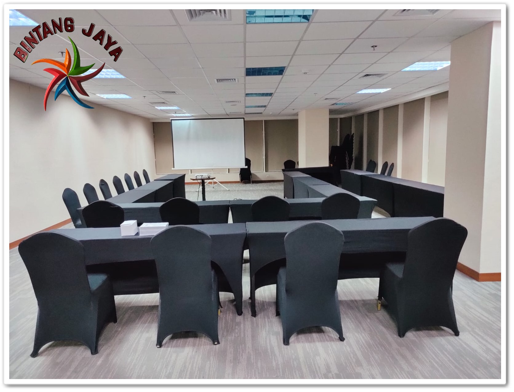 BINTANG JAYA CONVEKSIĀ Produksi Taplak Meja Bisa Custem Size dan Model dengan pilihan kain berkualitas premium, Tersedia banyak pilihan warna yang bisa anda sesuaikan dengan sarung kursinya.