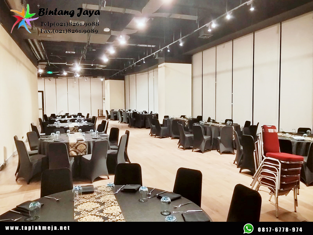 Taplak meja dan sarung kursi untuk kebutuhan usaha mereka dan mereka merasa puas dengan kualitas hasil produk jadi kami.