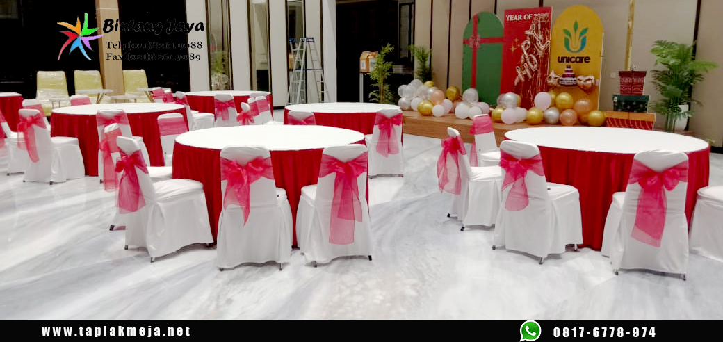 Taplak meja dan sarung kursi untuk kebutuhan usaha mereka dan mereka merasa puas dengan kualitas hasil produk jadi kami.