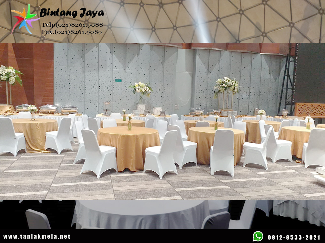 Jual taplak meja jenis bulat hotel berkelas dan mewah, Kami menjual taplak meja dengan sistem pemesanan pre order yang dengan cepat akan kami proses sesuai dengan keinginan anda. Ketika taplak meja sudah jadi akan kami kirimkan tepat waktu sesuai dengan jadwal yang telah ditentukan sebelumnya. Banyak jenis bahan yang kami sediakan, model dan warna serta aksesoris lainnya jug anda bisa dapatkan disini. Sudah banyak konsumen yang memesan taplak meja kepada kami, mereka puas karena bisa merequest taplak meja sebelum di produksi sesuai dengan keinginan dan selera masing-masing. Taplak meja tidak hanya membuat meja anda tampak rapih dan bagus, taplak meja juga melindungi meja anda dari debu dan kotoran agar meja anda selalu awet dan bersih.
