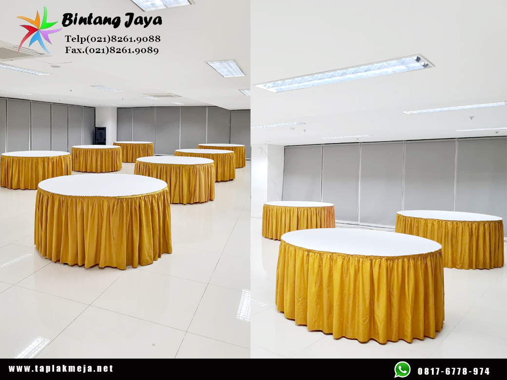 Dengan menggunakan taplak meja bulat berkualitas, tampilan acara akan terasa lebih tertata dan profesional. Hal ini tentu membantu menciptakan suasana yang nyaman bagi para tamu yang hadir.